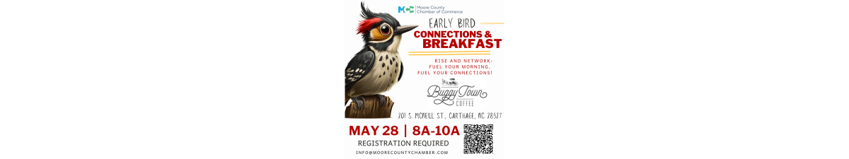 Start your morning with meaningful connection at our member‑exclusive Early Bird Breakfast & Networking, hosted at Buggy Town Coffee in the heart of Carthage. This relaxed, come‑as‑you‑are gathering is designed to help Moore County Chamber members build relationships, share ideas, and strengthen our business community before the day gets busy.
