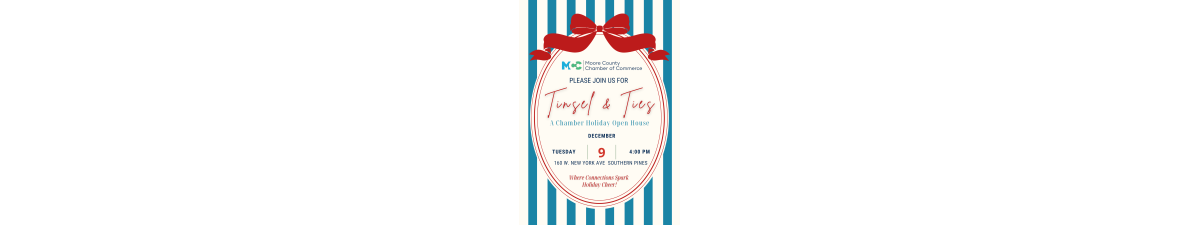Join us for an evening of celebration, connection, and holiday sparkle at the Moore County Chamber’s annual Tinsel & Ties Open House!