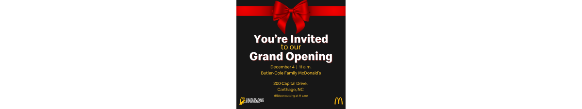Join us as we celebrate the Grand Opening & Ribbon Cutting of the brand-new McDonald's location in Whispering Pines!